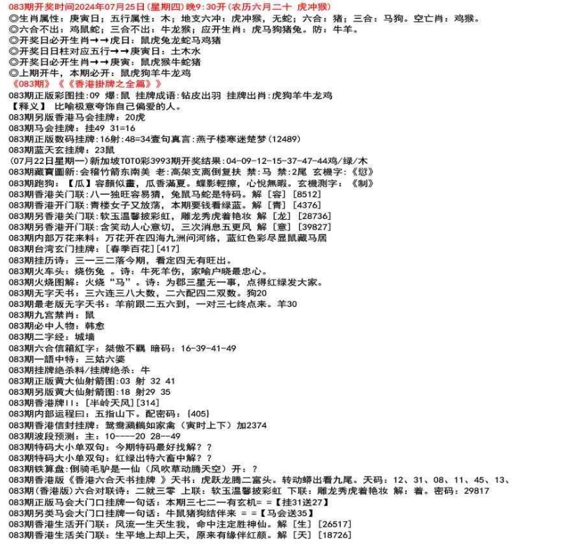 111期(香港版)六合对联诗:三三足养 上联:头在天上脚落地 下联:说是龙来假一字 解:落。密码:38729